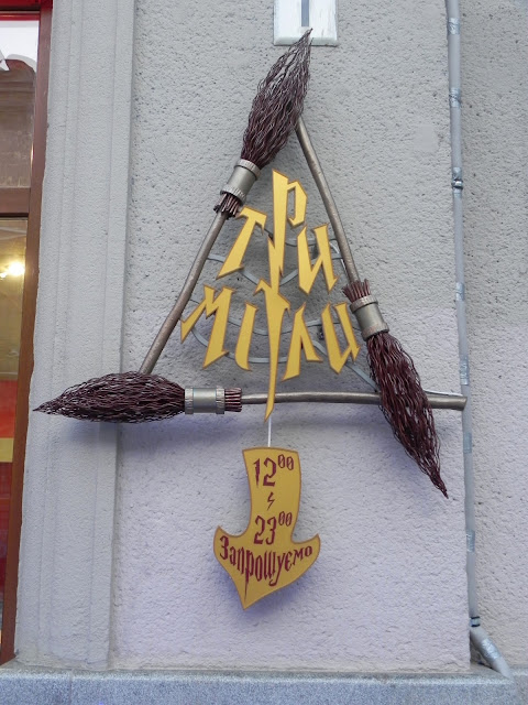 Дітям особливо подобається це місце, воно не схоже на звичайне тематичне кафе, "Три мітли" - це швидше такий собі клуб, де можна зустріти Гаррі Поттера. Насправді, один з офіціантів є майже близнюком кіношного Гаррі, схожості йому надають не тільки риси обличчя та зріст, а й мантія та круглі окуляри. Сфотографувати мені його, на жаль, не вдалося, тому доведеться піти туди ще раз, бо я дуже хочу мати фото з Гаррі! )